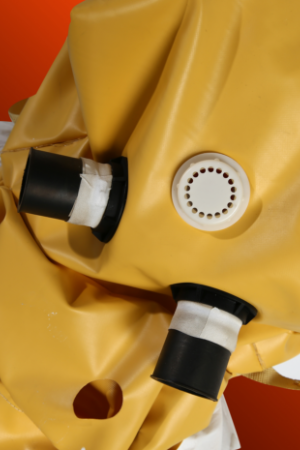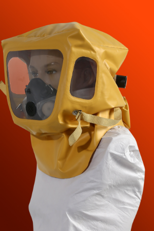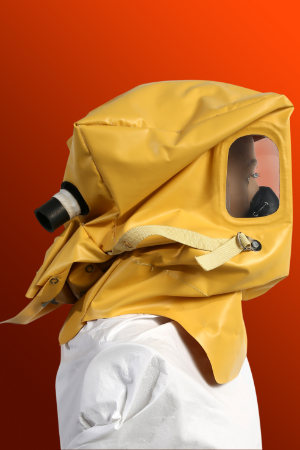 产品介绍:防护头罩由头罩主体及附件、面罩组件、引气组件组成。主要用于机舱内出现烟雾或有毒气源等情况下,为空勤员等机务人员提供走动时的防护。供氧时能够在头罩内建立正压,止有毒气体进入,头罩采用颜色鲜艳的材料制成,易于在烟雾中辨认,并配有防烟密封圈,防止外部有毒气体进入。